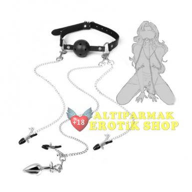 - Ağızlık, klipsler ve anal plug zincit seti