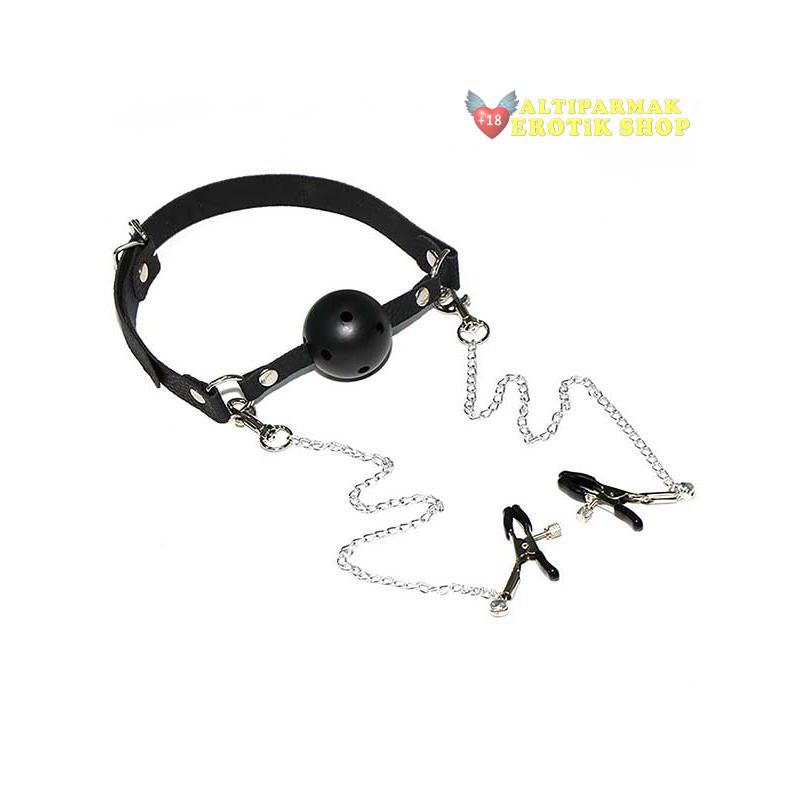 Noxx Ağız Topu ve Göğüs Ucu Klipsi - Mandalı - Ağız topunun delikli yapısı sayesinde kolaylıkla nefes alınabilir. - Zincirli, - Ağız topu 4 cm. çapındadır, - Ayarlı kemer sayesinde rahatlıkla uyum sağlar, - Göğüs klipslerinin - mandallarının ucu yumuşak siyah medikal silikon ile kaplı olup, sıkma ayarlı olduğundan istenilen kuvvet ve şiddette sıkma sağlanır.
