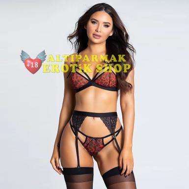 - Yarı transparan kırmızı siyah detaylı sütyen