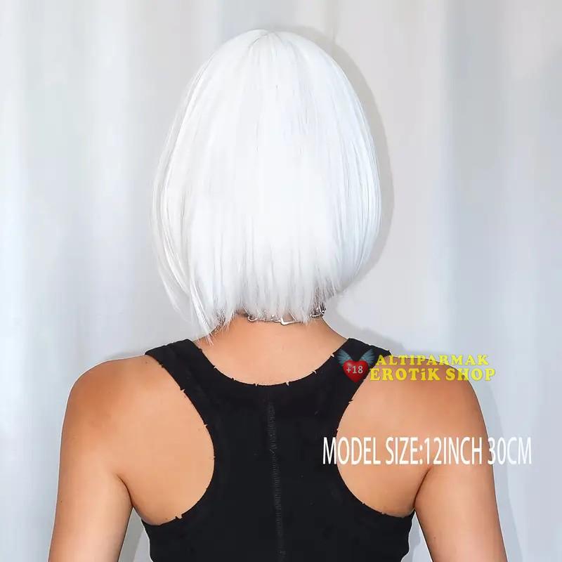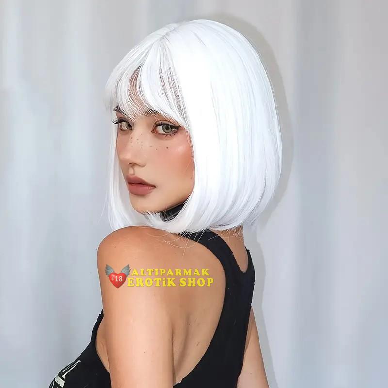 Beyaz Renk Kısa Küt Saç / Peruk