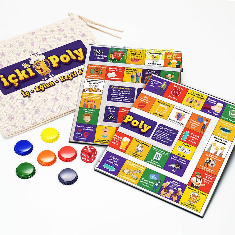 - Bir zar ve 6 renkli ahşap pul ile oynayabileceğiniz İçkiPoly ile gecelerinizi, partileri ile içecekli eğlenceleri çok daha keyifli bir atmosferde gerçekleşecek.