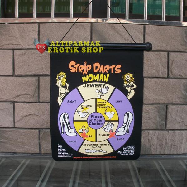 - Kadın ve erkek için 2 farklı yüzeyi bulunan ve manyetik dart oklarıyla aşk yaşamınıza eğlence taşıyacak olan Striptiz Dart Oyunu.