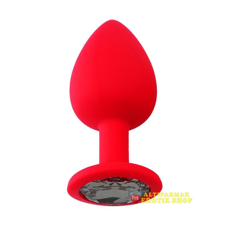 Backpart Parlak Taş Süslemeli Medikal Silikon Anal Tıkaç - Kırmızı