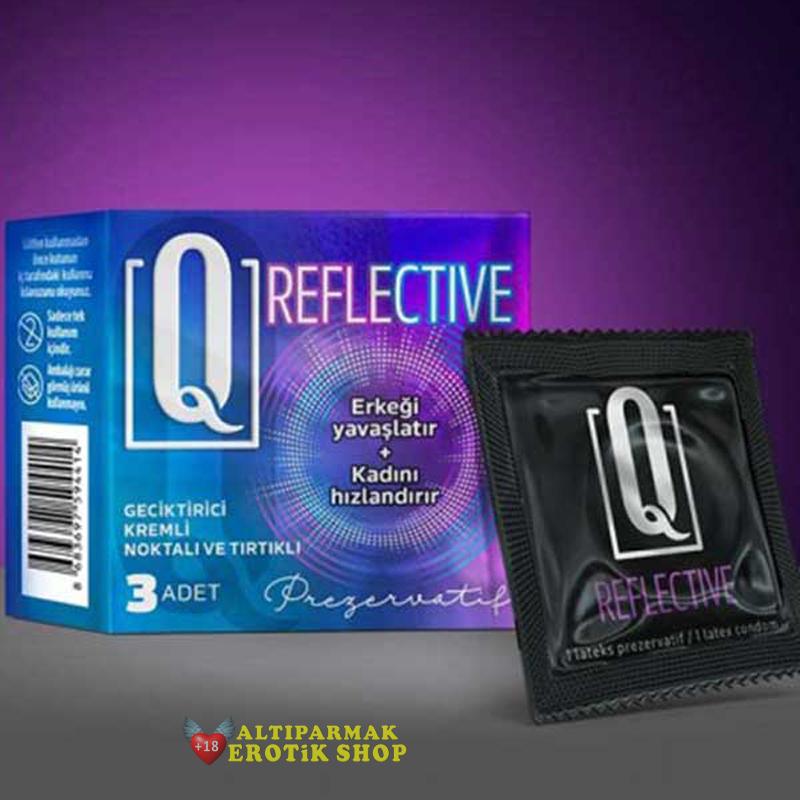 - Q Reflective  prezervatif özel kremi sayesinde hissiyatı azaltmadan ilişkiyi uzatır.
