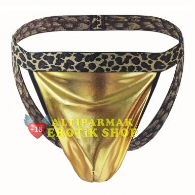 Altın Renkt ve Leopar Desenli Erkek Tanga