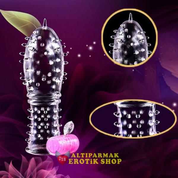 Penix Şeffaf Titreşimli Tırtıklı Penis Kılıfı