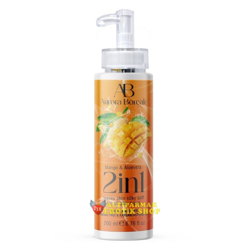 Aurora Boreale 2 si 1 Arada Mango Alovera Aromalı Masaj Yağı & Kayganlaştırıcı Jel 200 ml. - Su bazlı, - Renksiz, - Mango & Alovera Aromalı, - Uzun süre kurumayan kayganlaştırıcı özelliği ve rahatlatıcı etkisiyle genital kuruluğu azaltmaya yardımcı olur, - Masaj yağı olarakta tüm vücudunuzda aromatik meyve kokusu ile masaj yapabilme imkanı sunar, - Anal ve vajinal kullanıma uygundur, - Prezervatif ile kullanılabilir, - Vibratör, dildo, şişme manken, klitoral uyarıcı vibro gibi envayi çeşit cinsel oyuncaklarla kullanıma uygundur.