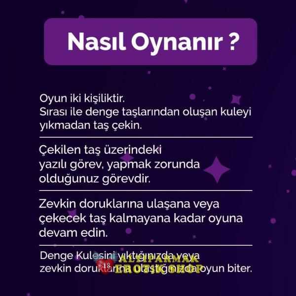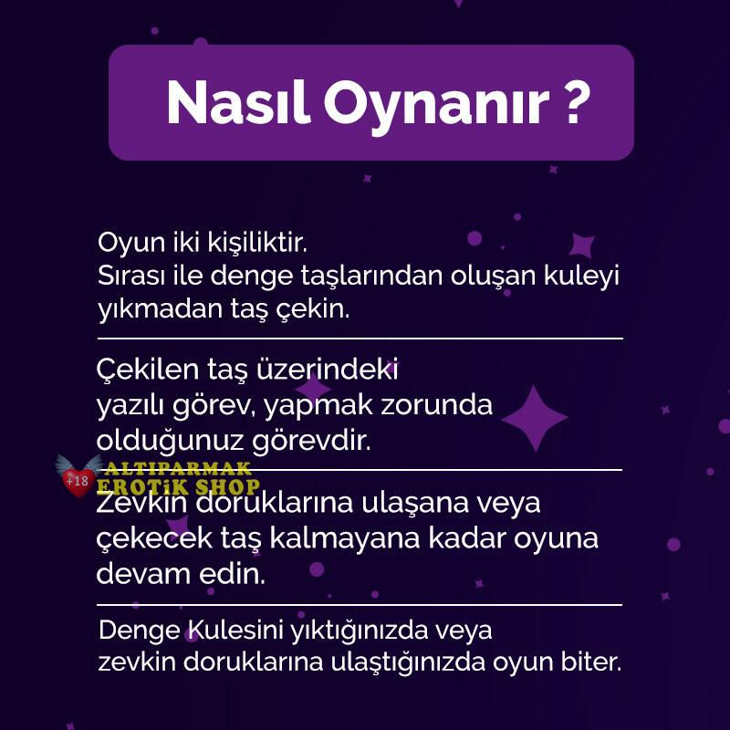 - Adım 2: Kule halindeki taşlardan dilediğiniz taşı çekin ve taş üzerinde yazılı olan erotik görevi eksiksiz şekilde yerine getirin.