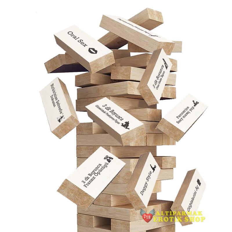 - Klasik denge oyunundan farklı olarak hem kulenin yıkılmaması için dikkatlice taş çekiyorsunuz, hem de çektiğiniz taş üzerindeki erotik görevi uyguluyorsunuz.